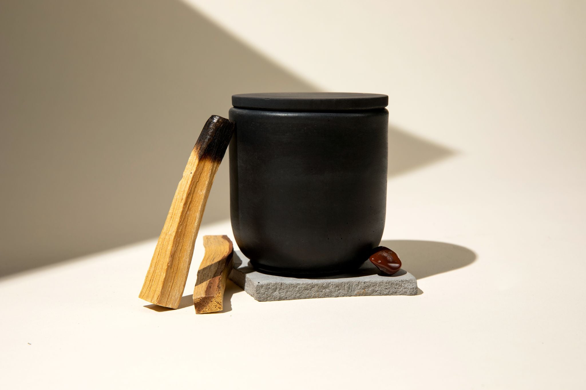 Poured in GORGEOUS cement vessels so you can reuse after you're done. We suggest using it as a planter or jewelry holder!